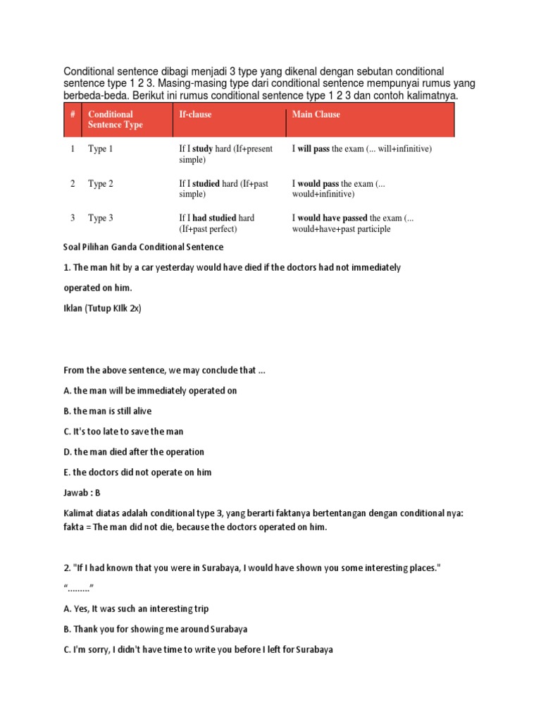 Contoh Soal Dan Jawaban Conditional Sentence - Guru Paud