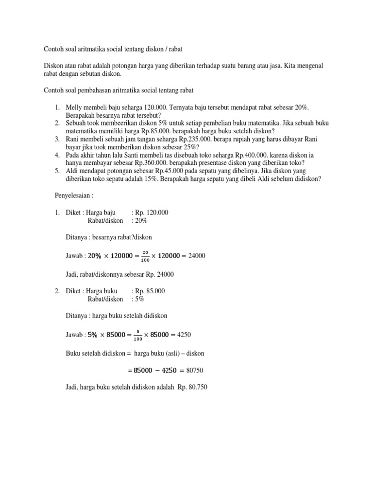Contoh Soal Aritmetika Sosial Tentang Diskon