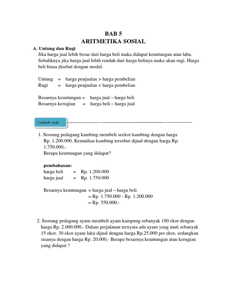 Contoh Soal Aritmatika Sosial Smp Kelas 9 - Cute766
