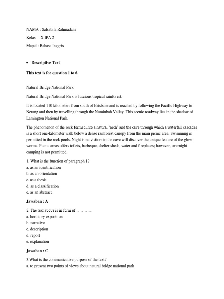 DOC) IX: Latihan Soal: Descriptive Text | Nur Rina Martyas Ningrum …