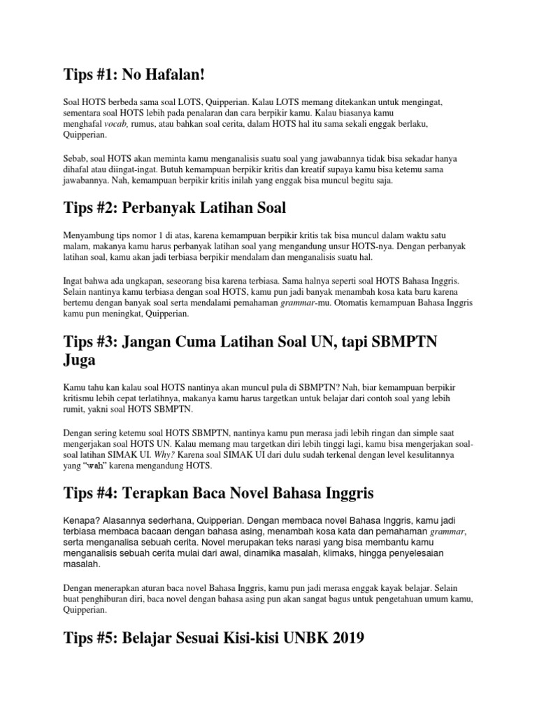 Tips Mengerjakan Soal HOTS UN Bahasa Inggris | Quipper Blog
