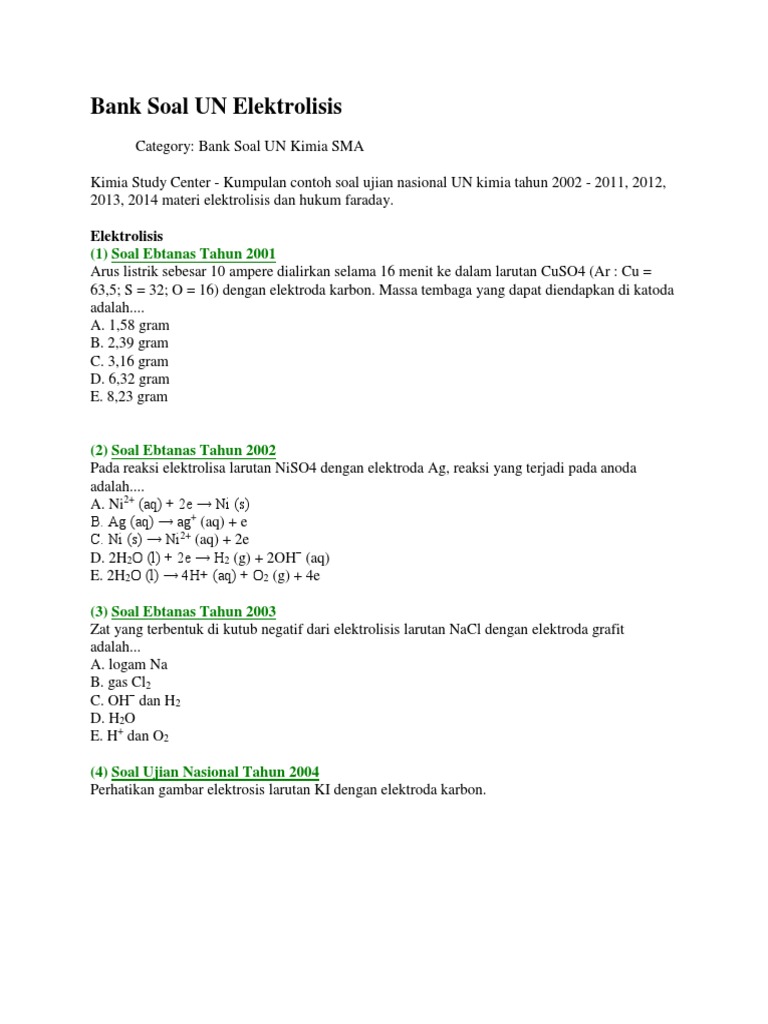 Bank Soal UN Elektrolisis
