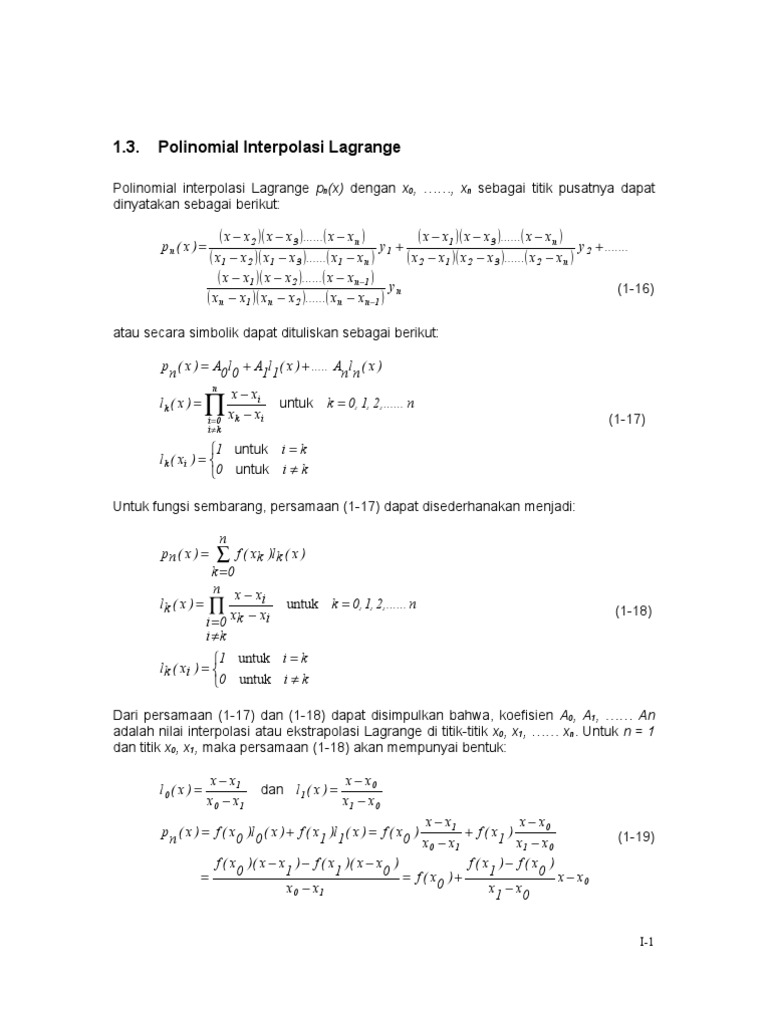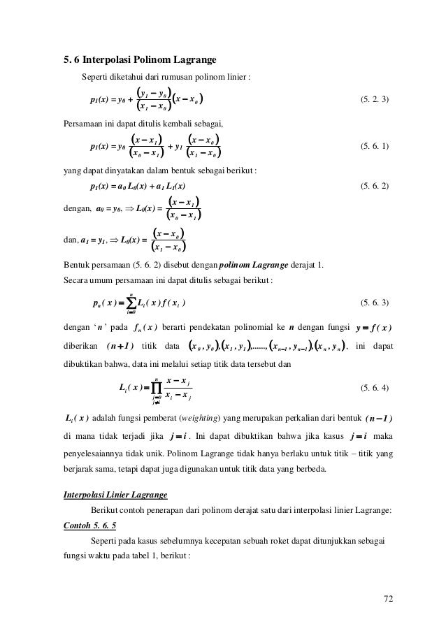 MAKALAH INTERPOLASI LINEAR, KUADRAT, KUBIK & POLINOM LAGRANGE - PDF Free Download