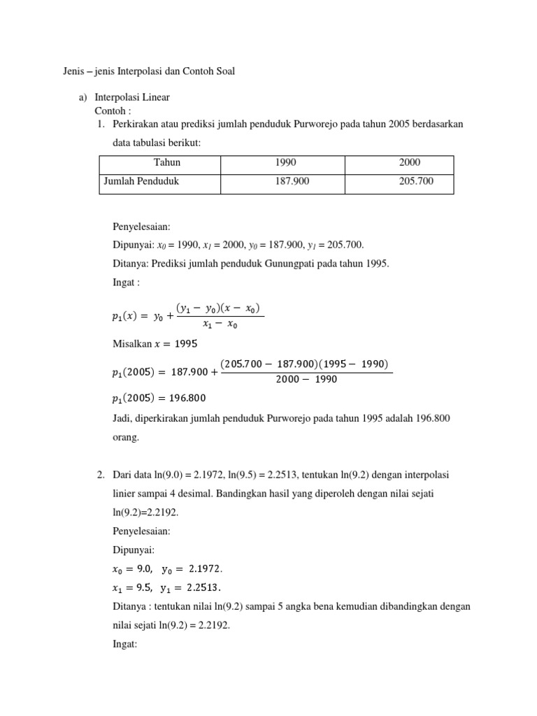 Contoh Soal Interpolasi Linier Metode Numerik - Barisan Contoh