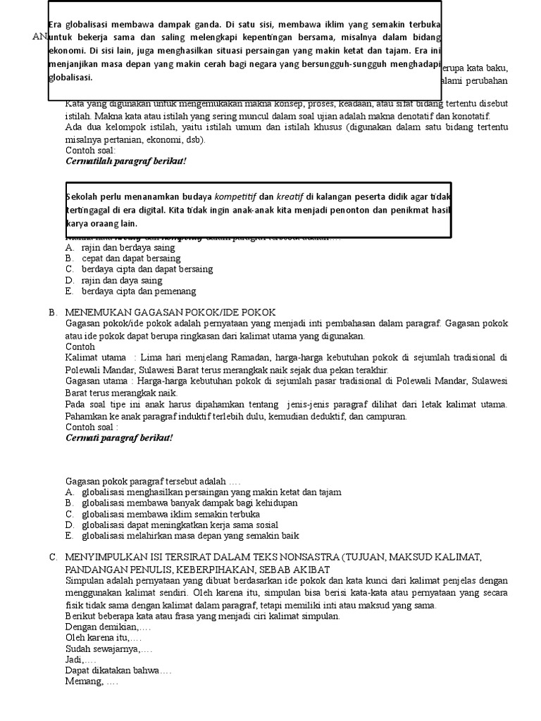 Kisi-kisi UN 2020 Kejar Paket C, Mapel Bahasa Indonesia - Un …