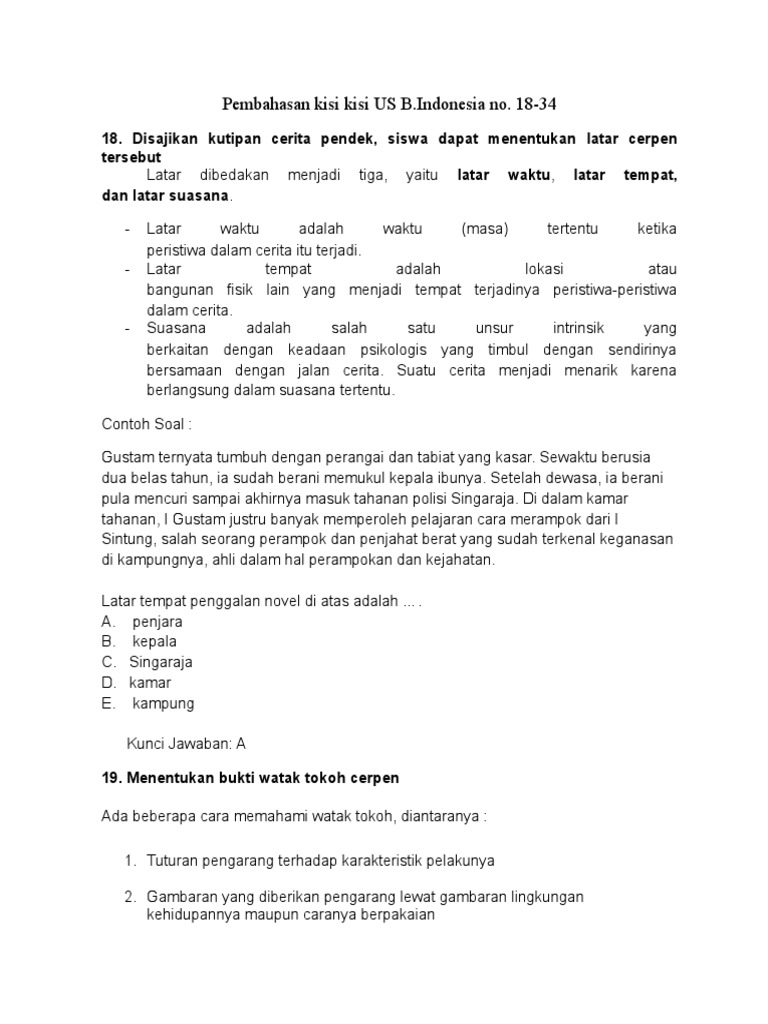 √Contoh Soal Menunjukkan Bukti Latar dan Watak | Ujian Nasional …