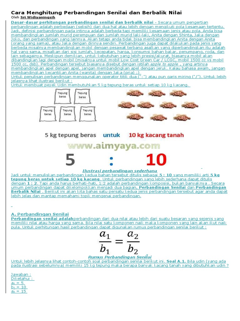 Cara Menghitung Perbandingan Senilai dan Berbalik Nilai: Oleh Sri Widiyaningsih