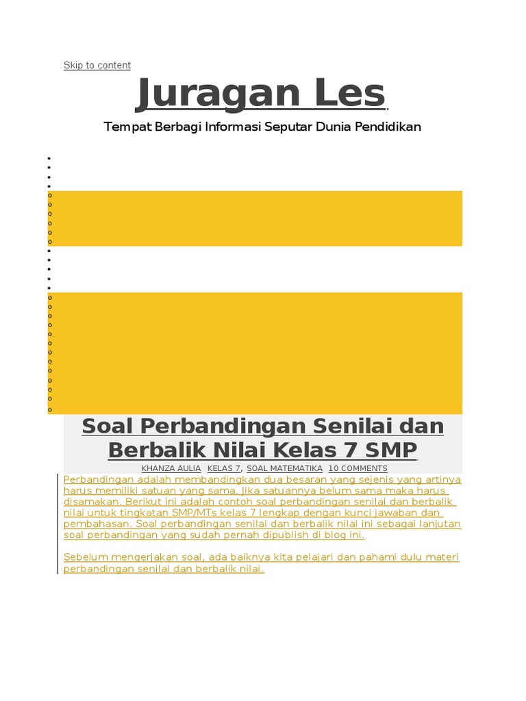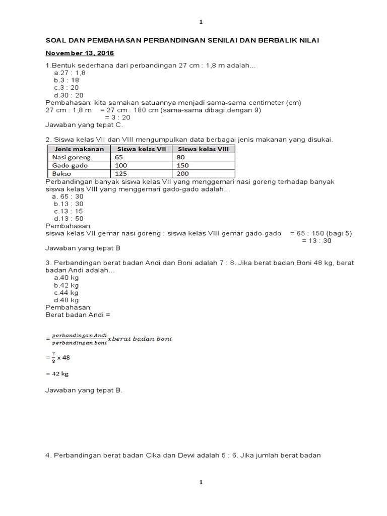 Contoh Soal Perbandingan Senilai Dan Berbalik Nilai Kelas 7 - Contoh Soal Terbaru