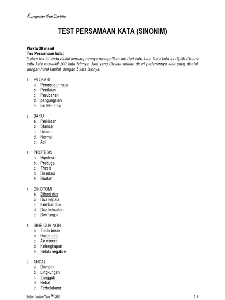 Contoh Soal Psikotes Sinonim Dan Antonim