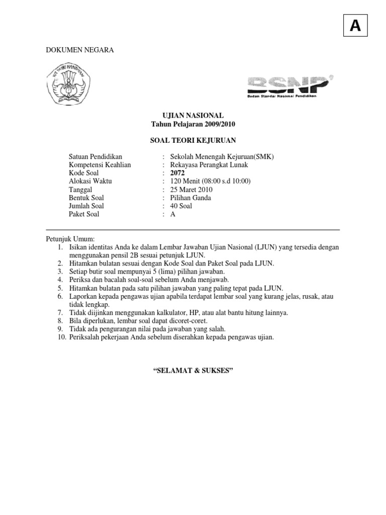 PDF) SOAL UN Teori Kejuruan A Rekayasa Perangkat Lunak | hendri …