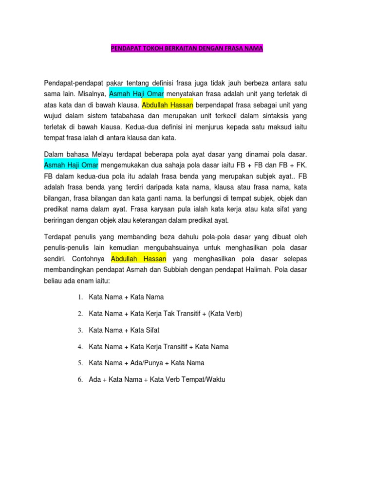 Pendapat Tokoh Berkaitan Dengan Frasa Nama