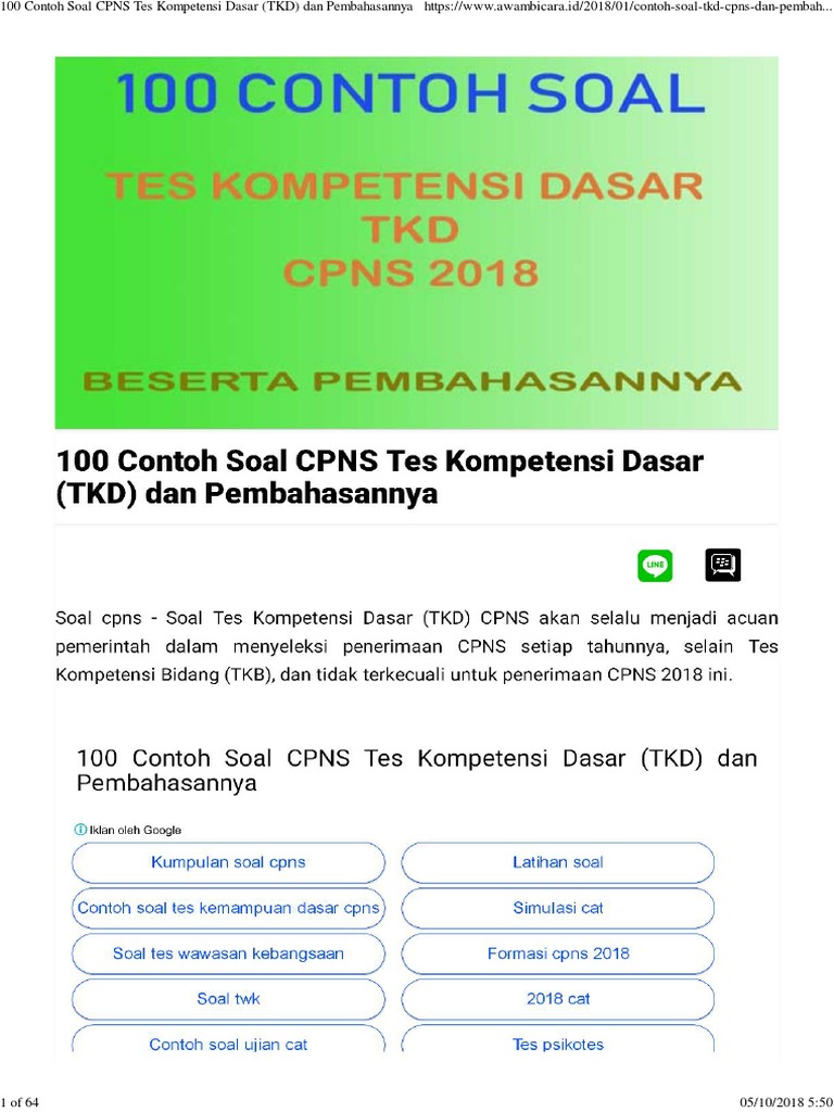 100 Contoh Soal CPNS Tes Kompetensi Dasar (TKD) dan Pembahasannya | Belajar, Latihan, Sekolah