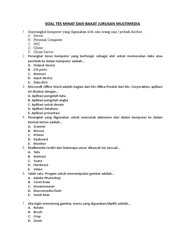 SOAL TES MINAT DAN BAKAT JURUSAN MULTIMEDIA.docx