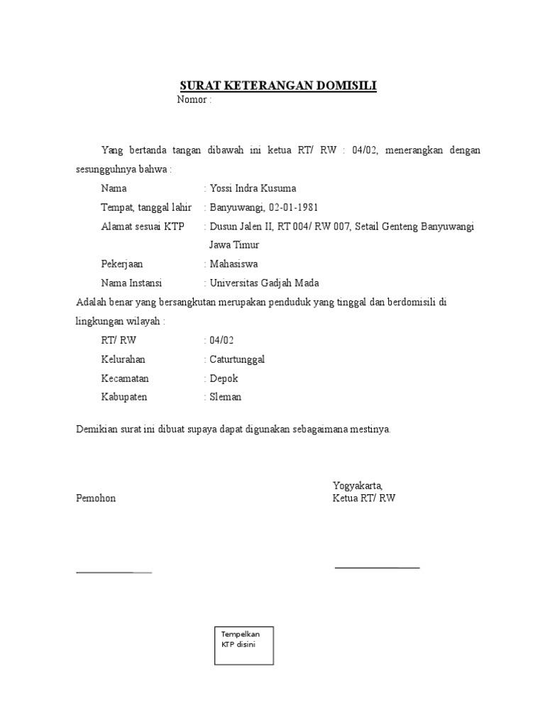 Contoh Surat Domisili Penduduk - Download Kumpulan Gambar