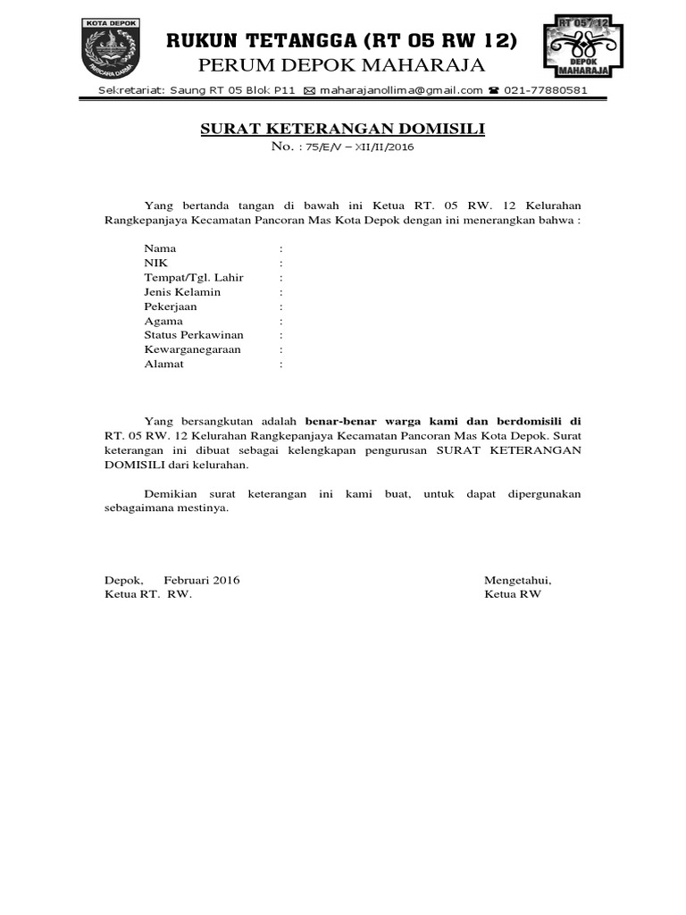 Contoh Surat Domisili Dri Rt – Backup Gambar