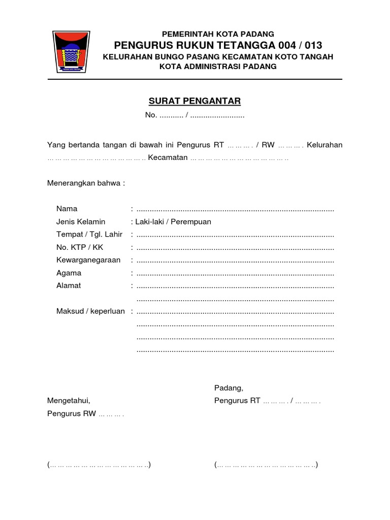 2 Contoh Surat Pengantar RT yang Bisa digunakan Serbaguna