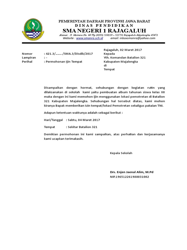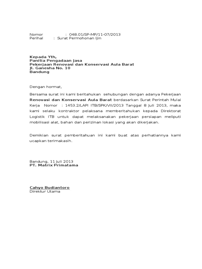 Contoh Surat Izin Penggunaan Tempat - Mosaicone