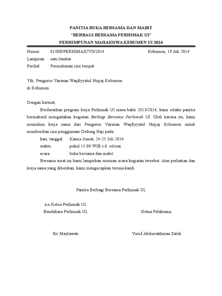 DOC) CONTOH SURAT PERMOHONAN PINJAM TEMPAT | Josiah Onasis - Academia.edu