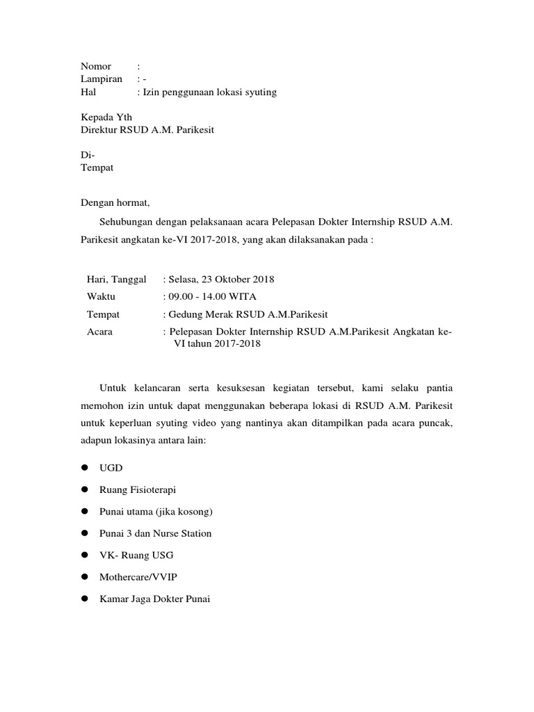 DOC) Surat Ijin Shooting kitads film Duren Sawit.docx | christina quintasari - Academia.edu