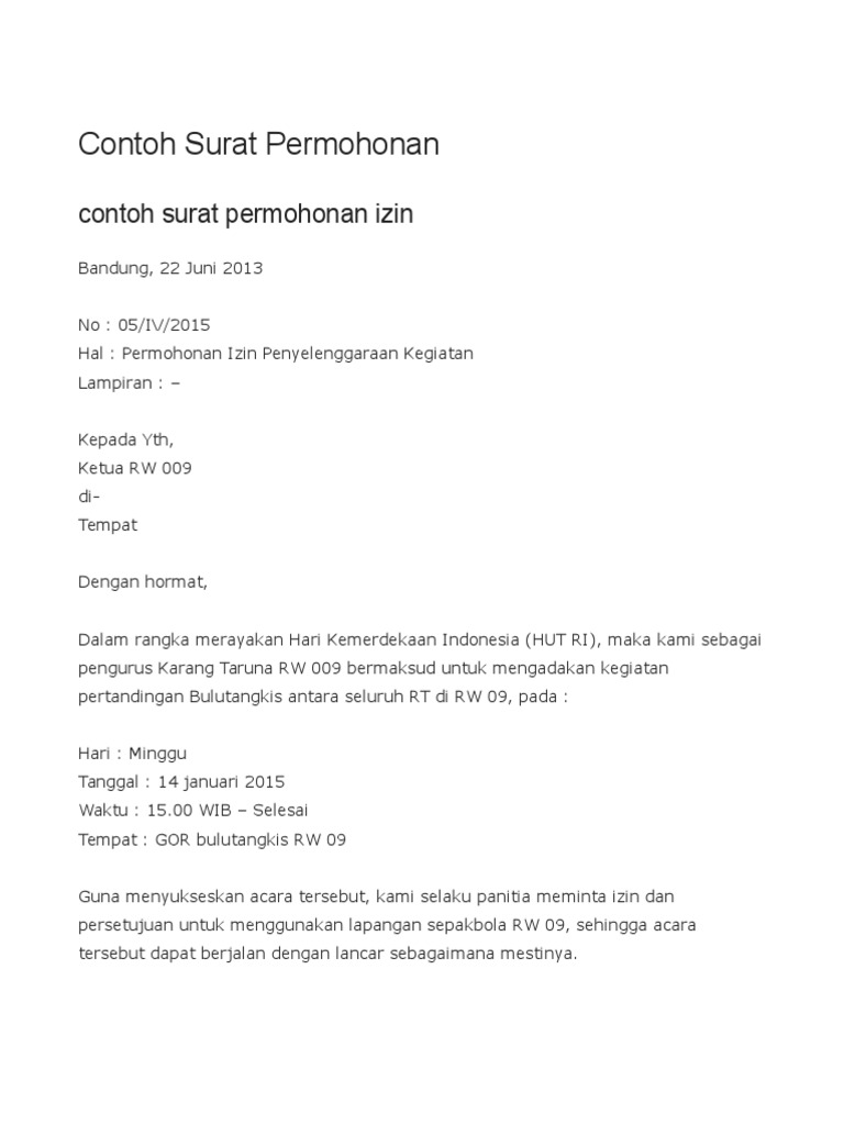 Contoh Surat Permohonan Izin Keramaian Rt Rw