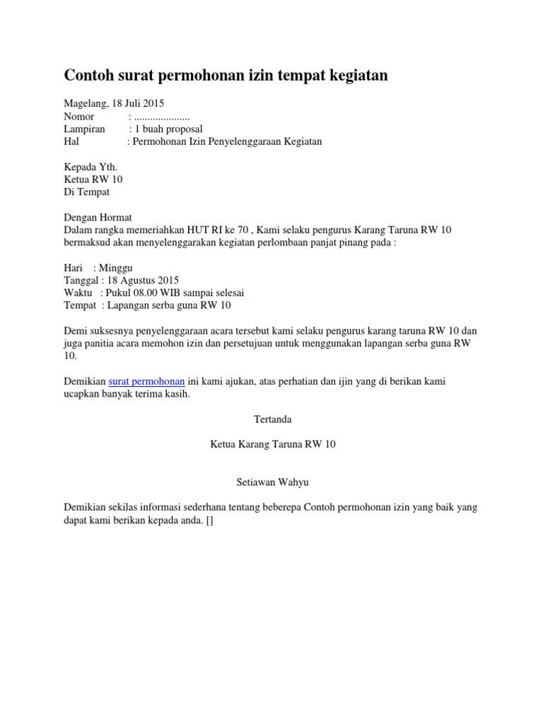 Contoh Surat Izin Tempat
