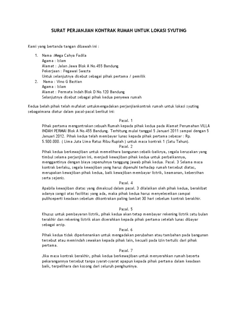 Contoh Surat Perjanjian Kontrak Dan Sewa Menyewa Rumah