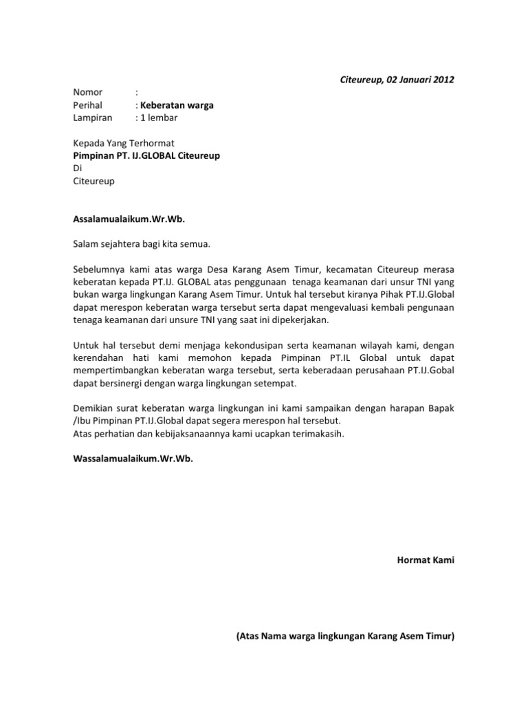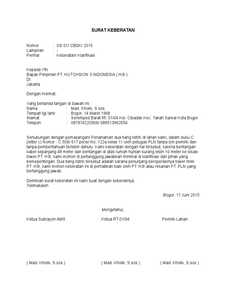 DOC) Surat Keberatan | Sabar Marpaung - Academia.edu