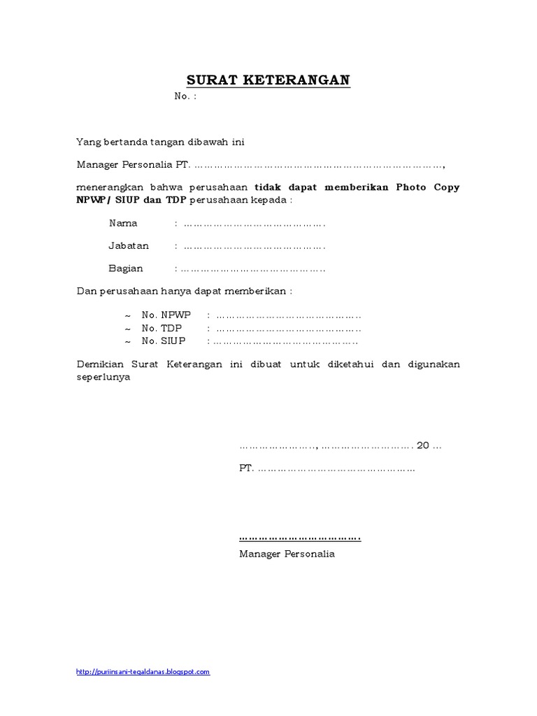 Surat Keterangan Keberatan Mengeluarkan Siup Dan Npwp - Bagi …
