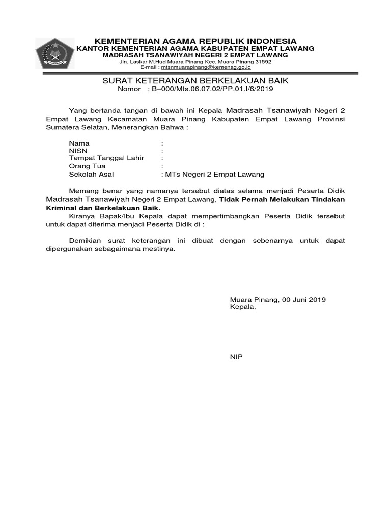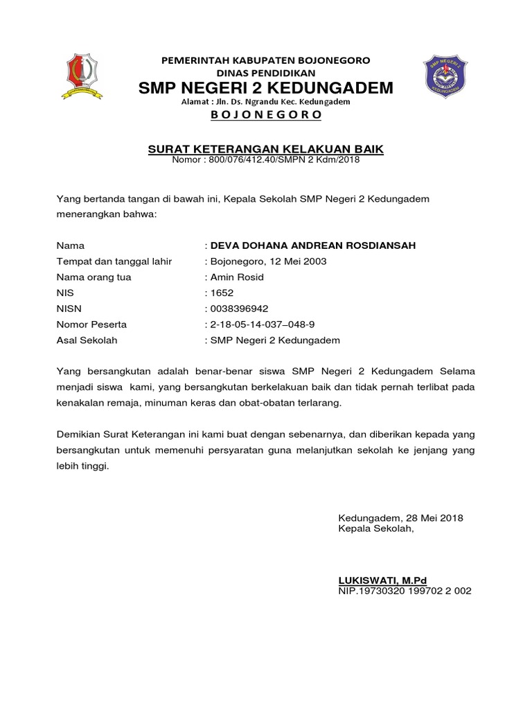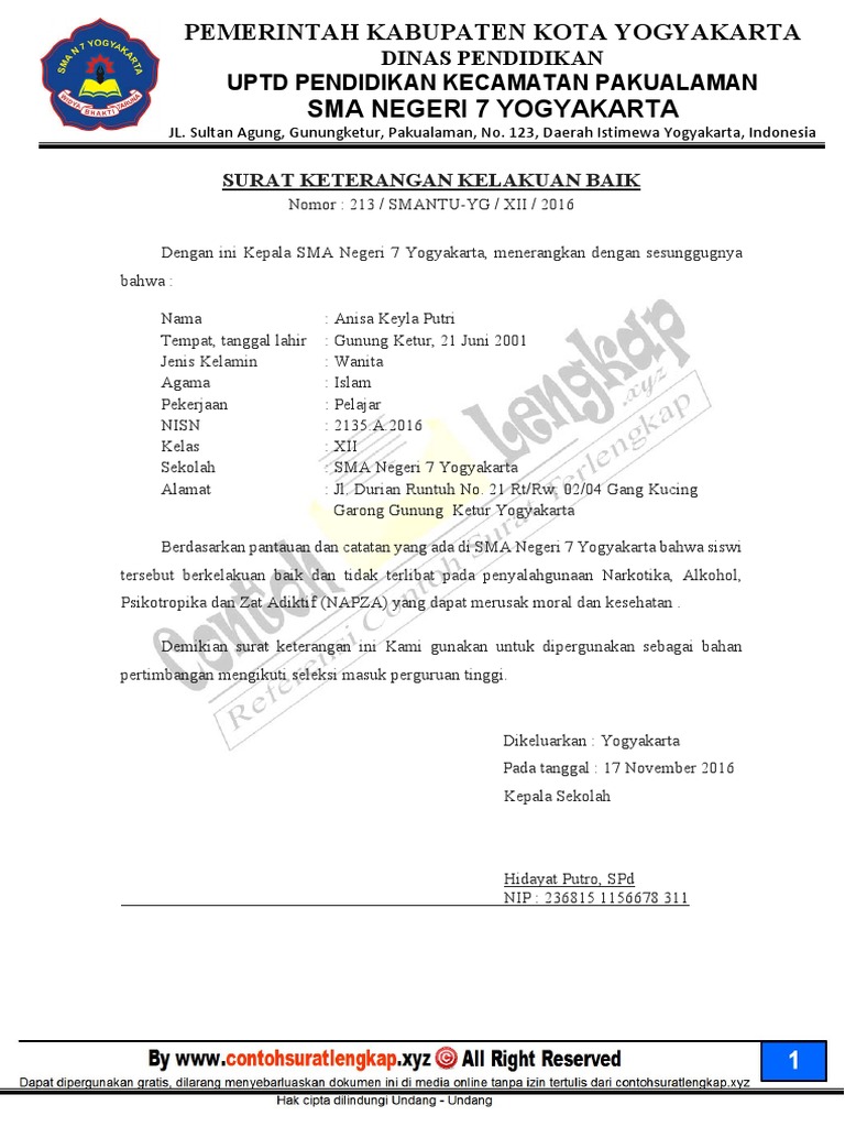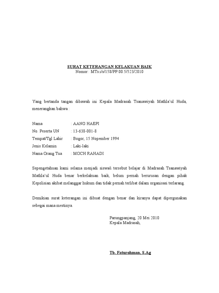 Surat Keterangan Kelakuan Baik Dari Sekolah - Bagi Contoh Surat