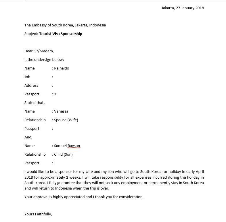 Contoh Surat Sponsor Visa Untuk Keluarga