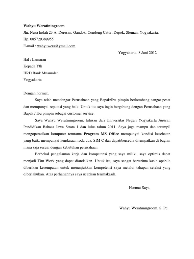 Contoh Surat Lamaran Kerja Bank Muamalat Syariah Bagi Contoh Surat …