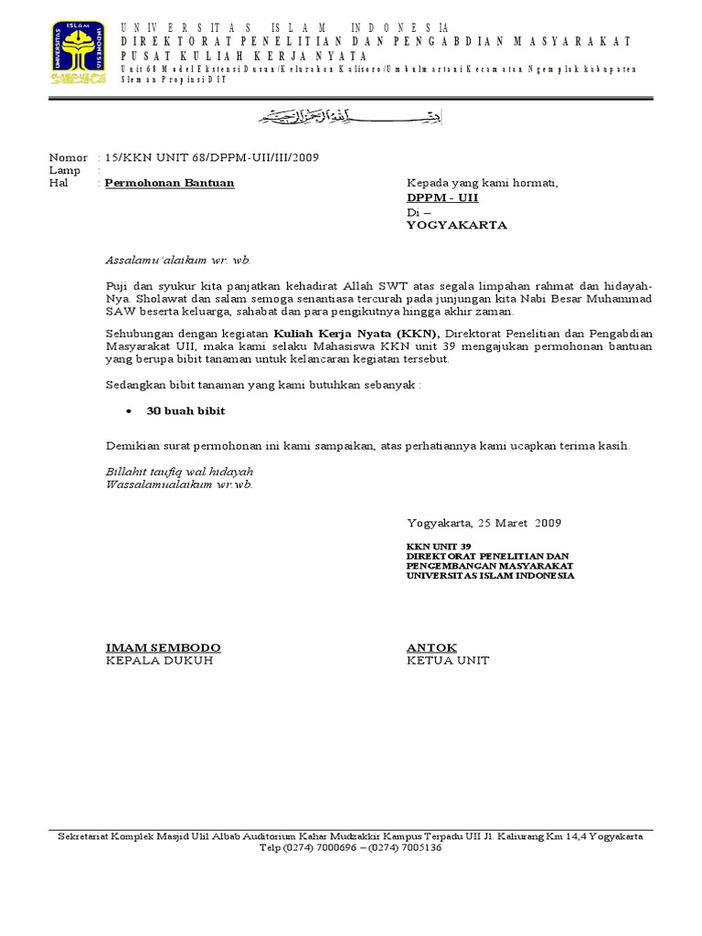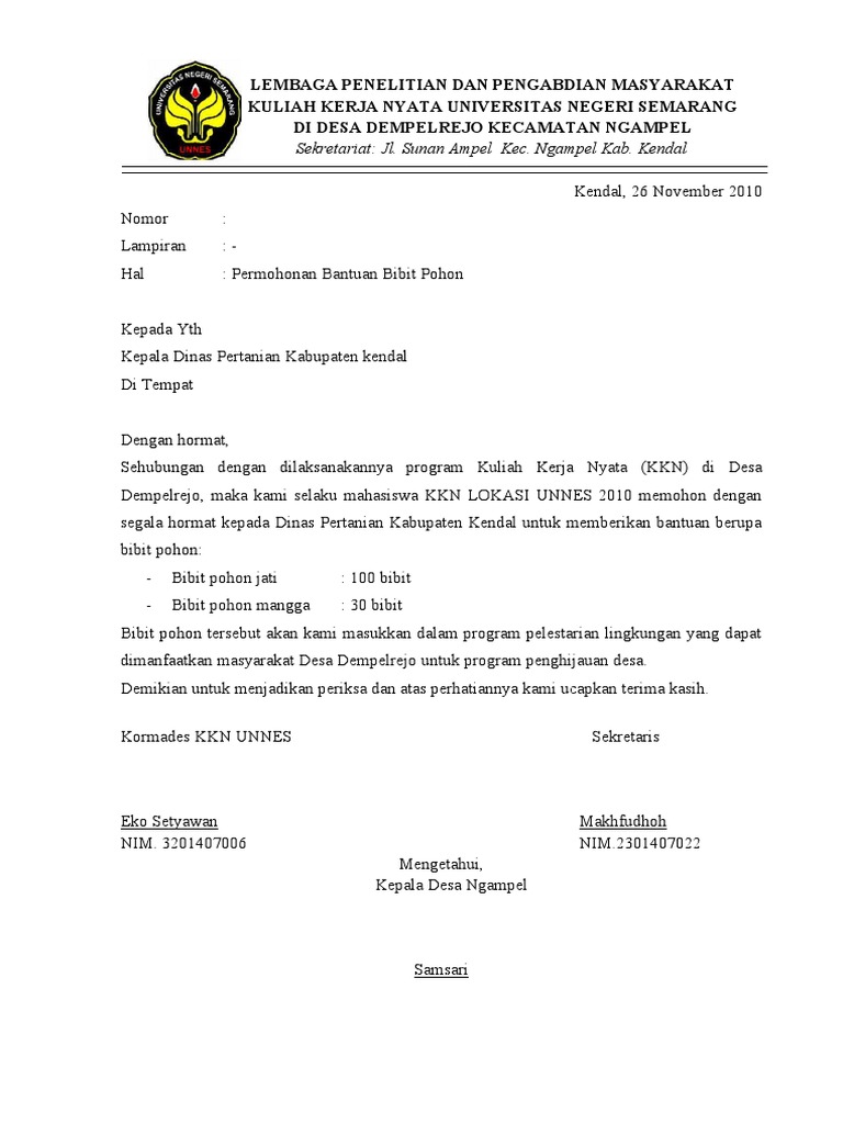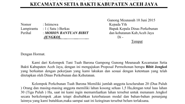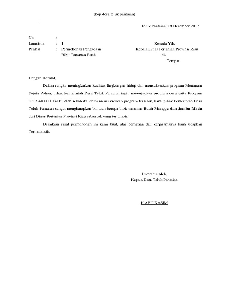 Contoh Surat Permohonan Bantuan Bibit Tanaman - Contoh Seputar Surat