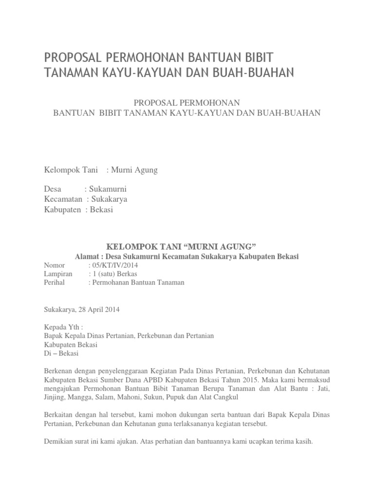 Contoh Proposal Pengajuan Bibit Tanaman Ke Dinas Pertanian Doc …