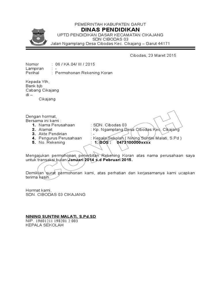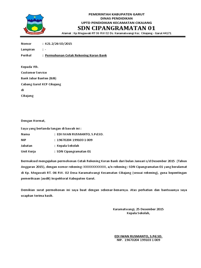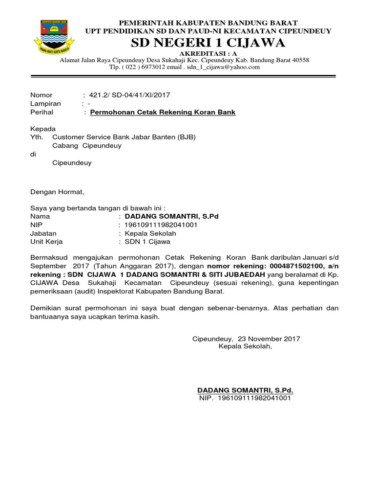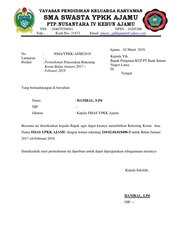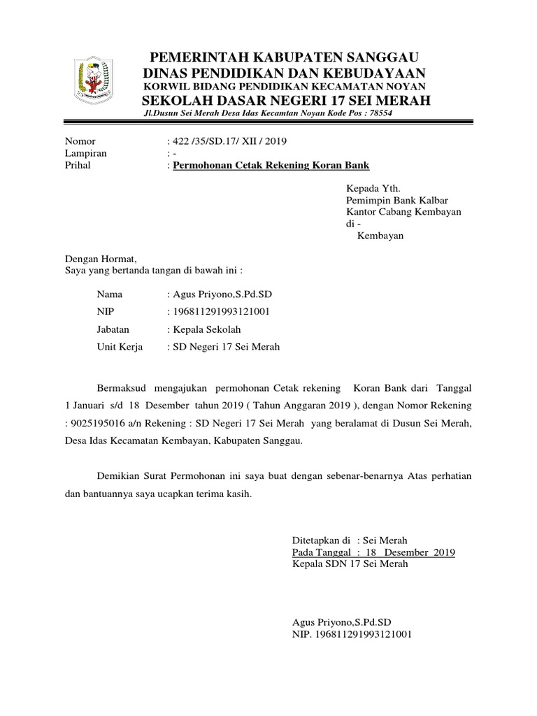 Contoh Surat Permohonan Cetak Rekening Koran Sekolah - Bagi Contoh …