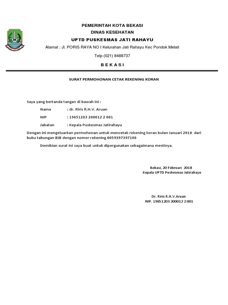 Contoh Surat Permohonan Print Out Rekening Koran - Contoh Seputar …