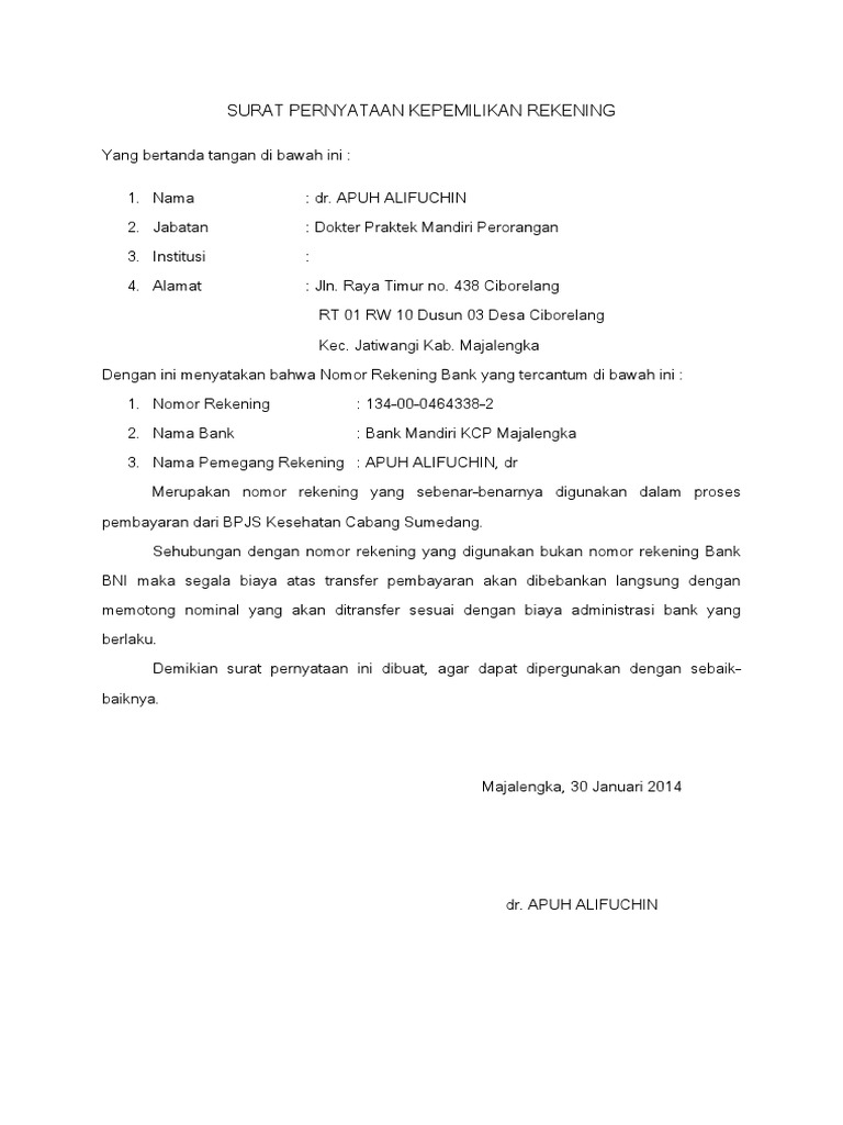 Wow Contoh Surat Pernyataan Rekening Bank 61 Di Inspirasi Membuat …