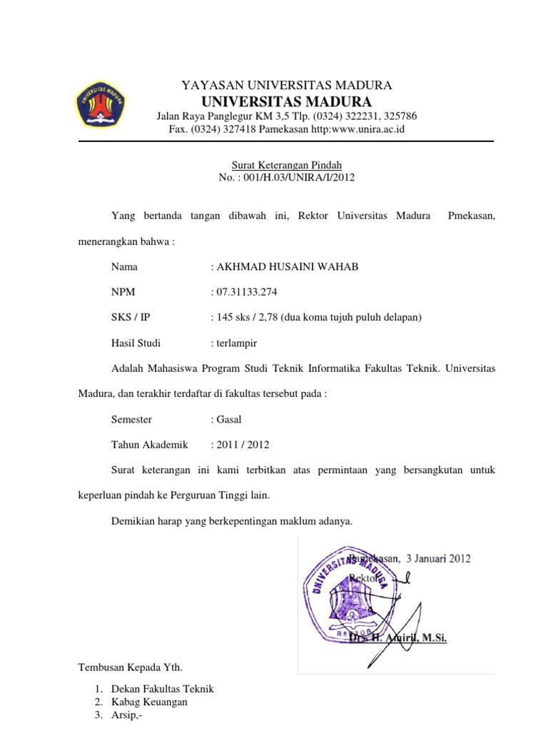Contoh Surat Keterangan Pindah Kuliah Dari Kampus - Contoh Seputar …