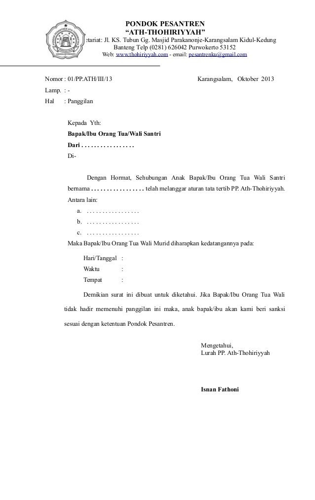 Contoh Surat Panggilan Orang Tua Siswa karena Masalah - Guru Loyal