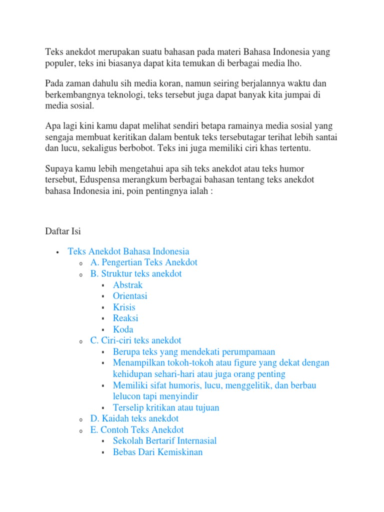 Contoh Anekdot Pendidikan Beserta Strukturnya | Kumpulan Soal …