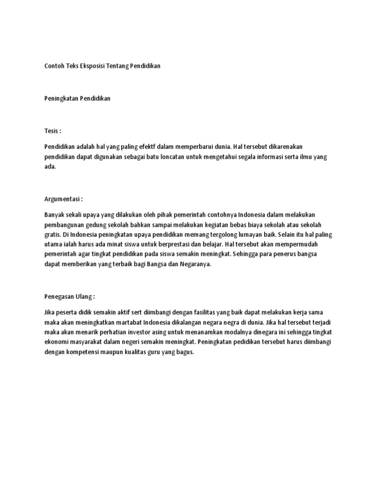 Contoh Teks Eksposisi Tentang Pendidikan Di Indonesia - Dapatkan …