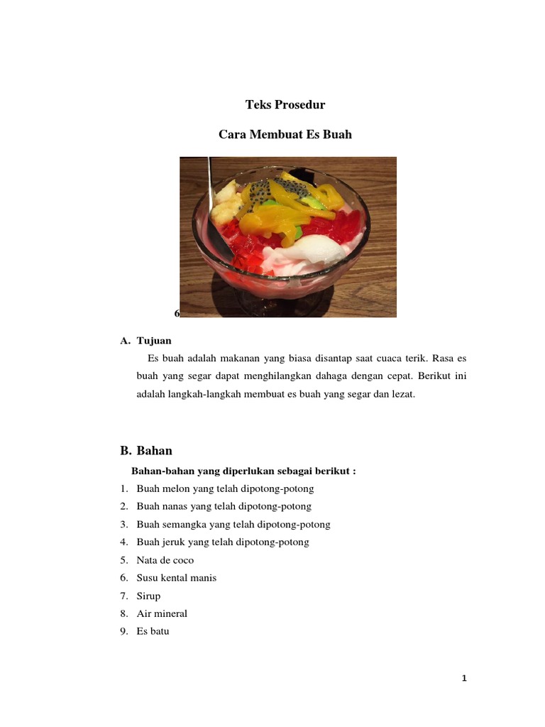 Teks Prosedur Cara Membuat Es Buah: 6 A. Tujuan