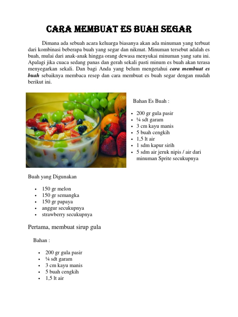 Contoh Procedure Text “Cara Membuat Es Buah” Dalam Bahasa Inggris …