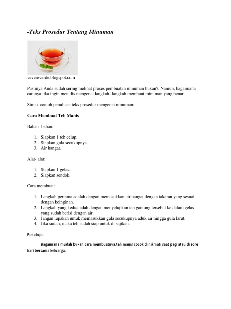 Contoh Teks Prosedur Tentang Minuman | Masuk Universitas