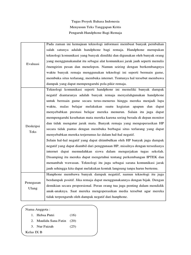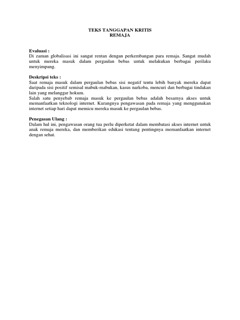 DOC) Contoh Teks Tanggapan Kritis | fiola raynan - Academia.edu