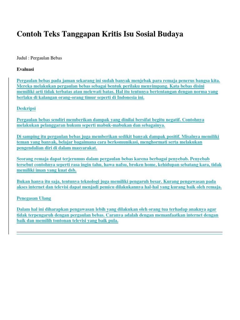 Contoh Teks Tanggapan Kritis Tentang Budaya - Mosaicone