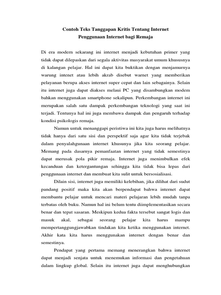 Contoh Teks Tanggapan Kritis Tentang Internet - Berbagai Teks Penting