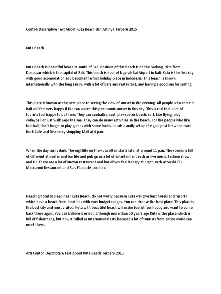 Contoh Descriptive Text About Kuta Beach Dan Artinya Terbaru 2015