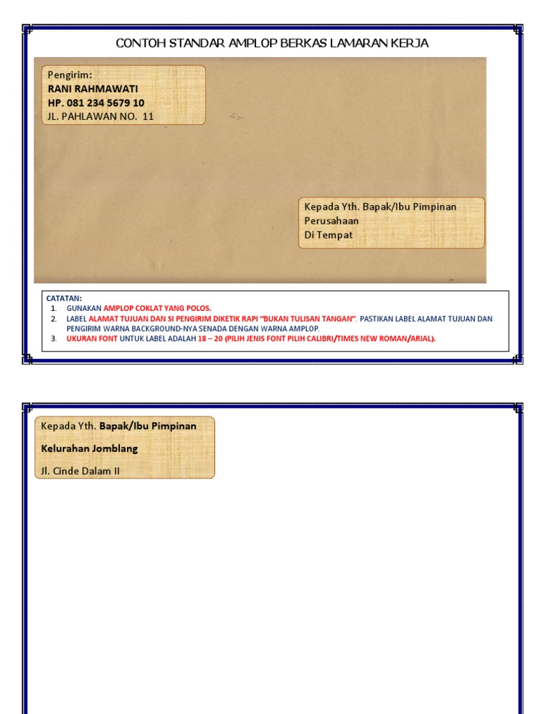 Contoh Amplop Lamaran Kerja - Penulisan Alamat dan Formatnya