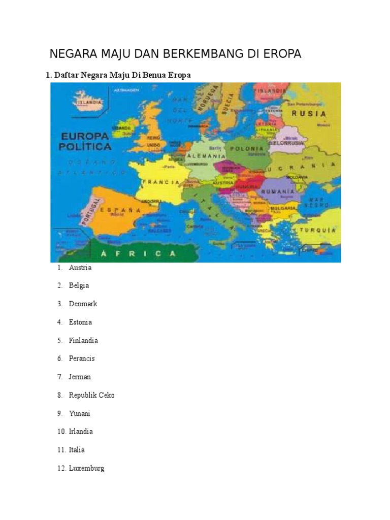 Negara Maju Di Benua Eropa Beserta Negara Berkembang