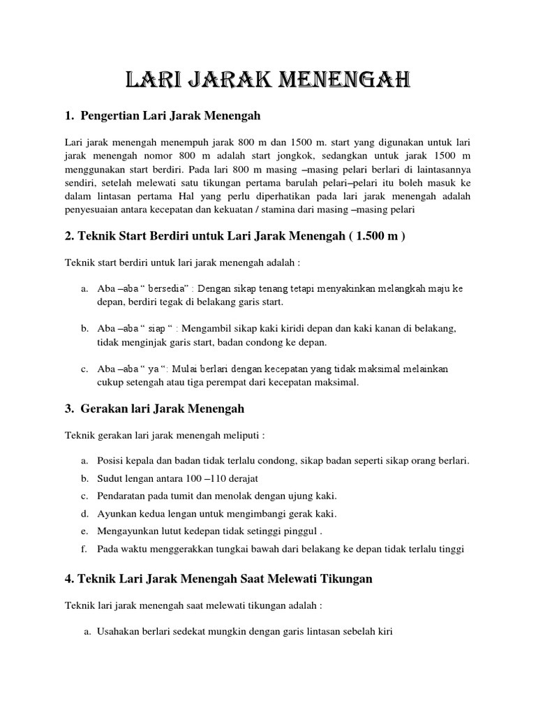 Teknik-Teknik dan Gerakan Lari Jarak Menengah - Sakersomu …